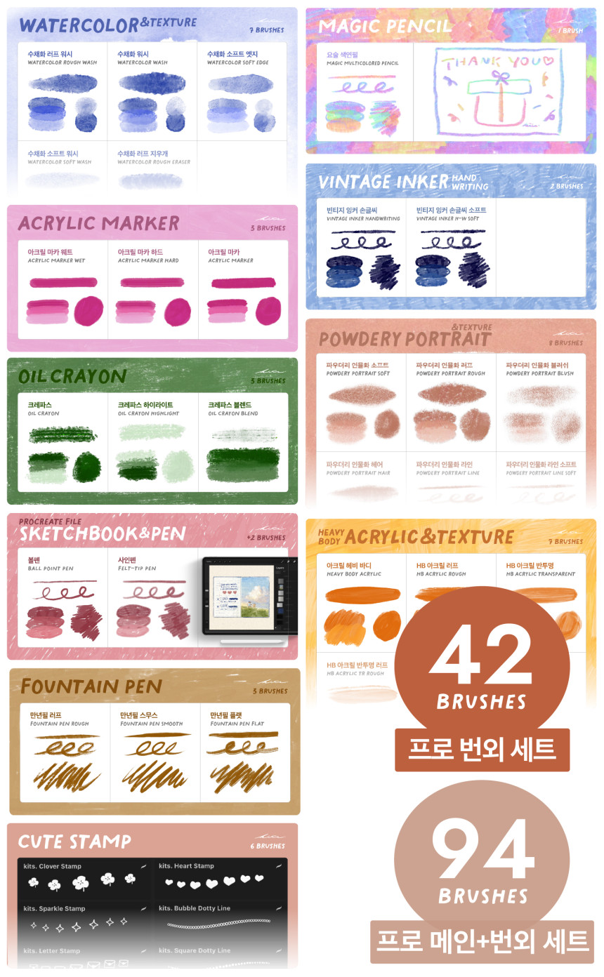 + 프로 손그림 브러시 번외 세트 (42종)